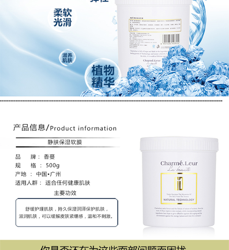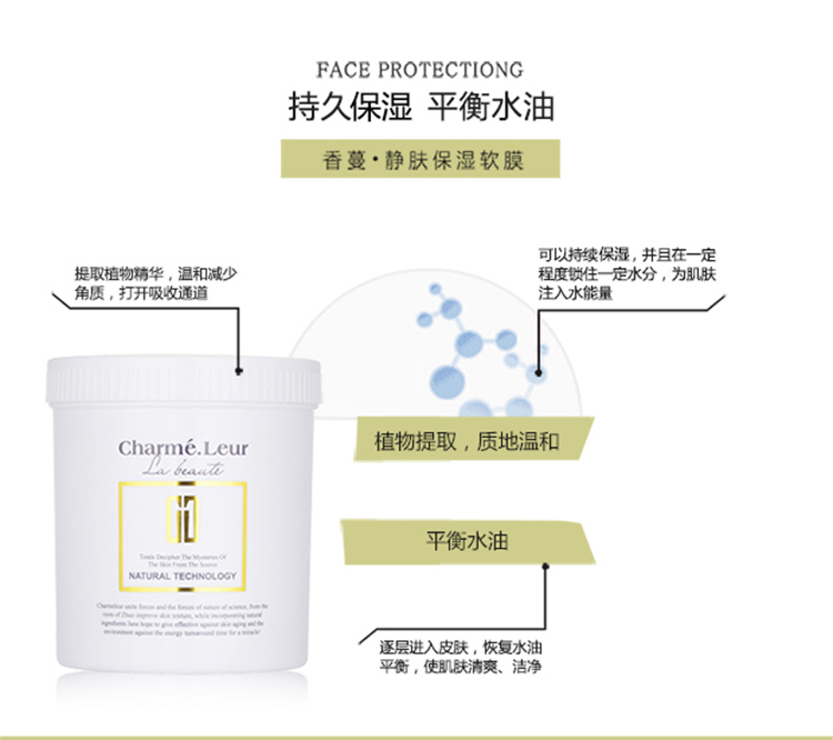 使用方法:取20克膜粉加蒸馏水调匀,以不流为宜,敷于洁净面颈部,避开眼唇,15分钟后取膜,2分钟内完成调膜敷膜工作;根据肌肤状况5-8天使用一次,配合舒敏精华液或舒敏安瓶打底敷膜,效果更佳。