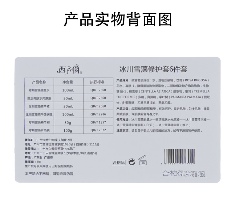 使用方法:冰川雪藻能量水—赋活亮肤水光原液——冰川雪藻精华液—冰川雪藻精华弹润乳(白天)—冰川雪藻精华霜(晚上)