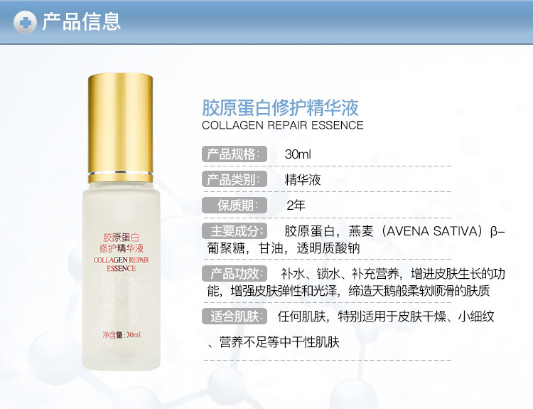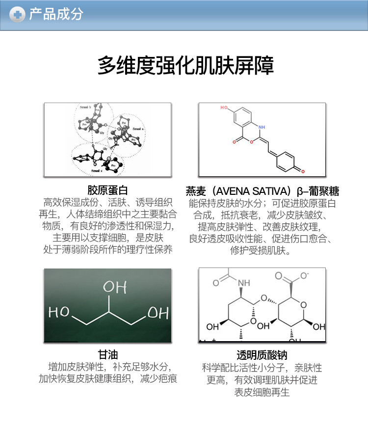 成份:多种活性生物酶、胶原多肽、三肽、复合矿物质、活性胶原因子、弹力纤维等。
