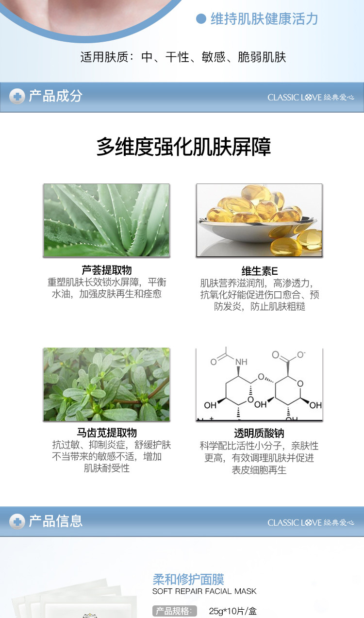 作用:保湿补充皮肤水份,滋养润泽肌肤,维持肌肤水油平衡,为中、干性肌肤和不合理美容问题性肌肤日常爽肤润肤、修护之佳品。