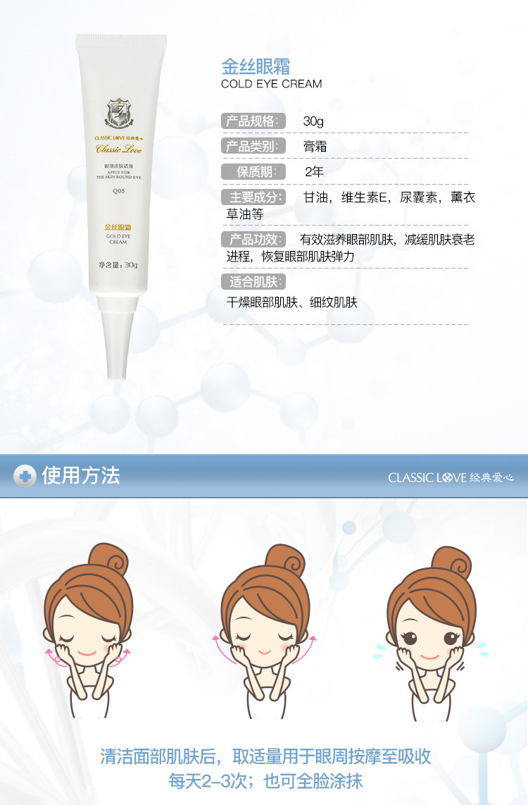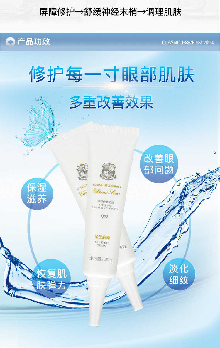 作用:滋养眼部肌肤,奢华的外观,润而不油,赋予肌肤如丝绒般细滑柔软的舒适感,舒展眼部细纹,减缓肌肤成熟过程,提升眼部肌肤活力,让眼睛更显灵动。