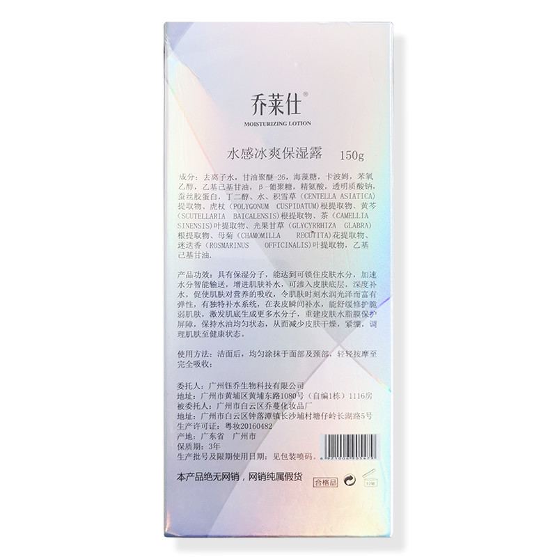 作用:具有保湿功能,可锁住皮肤水分,提升水分灵活吸收,增进肌肤补水,可达皮肤底层,充分补水,促使肌肤对营养的吸收,令肌肤时刻水润光泽而富有弹性,有特殊补水效果,在表皮充分补水,能舒缓修护较薄肌肤,使肌底产生更多水分,建立皮肤水脂膜新的屏障,保持水油均匀状态,从而减少皮肤干燥,紧绷,改善肌肤至原始状态。