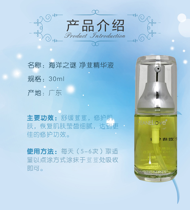 使用方法:每天(5-6次)取适量以点涂方式抹于痘痘处吸收即可。