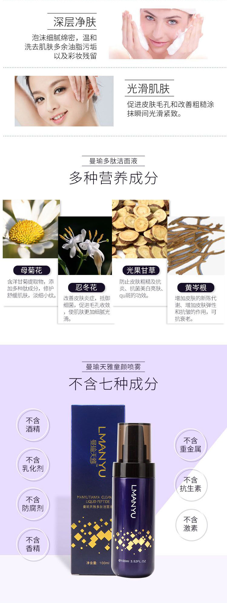 曼瑜天雅(LMANYU)多肽洁面液100ml