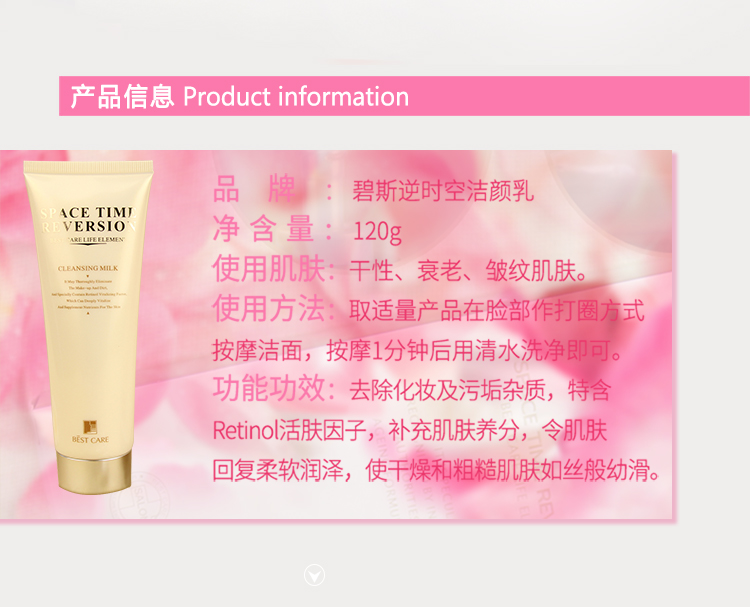 作用:去除化妆及污垢杂质,特含Retinol活肤因子,补充肌肤养分,令肌肤回复柔软润泽,使干燥和粗糙肌肤如丝般幼滑。