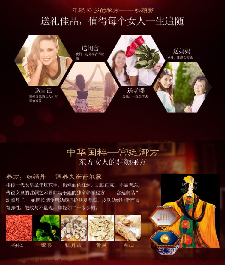 适合肤质:任何肤质,尤其30+以上女性及皱纹、松弛等熟龄肌肤。