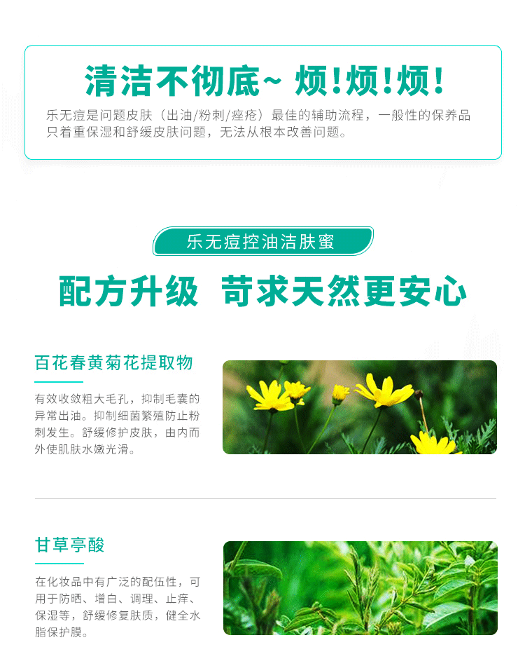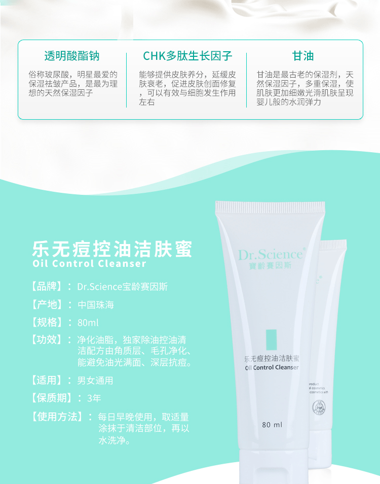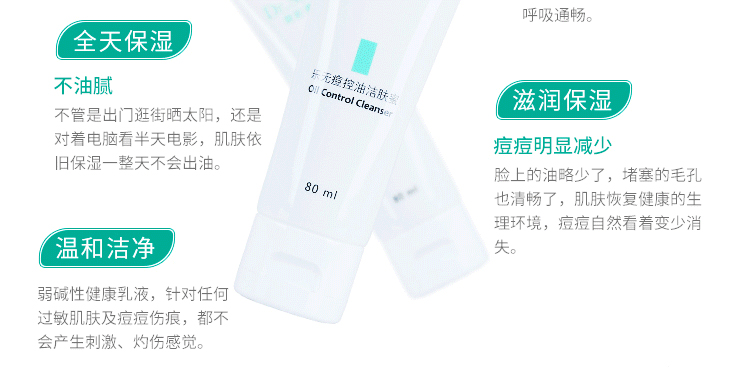 适合肤质:用于痤疮肌肤的清洁、控油、抑菌。红蓝光激光术后清洁肌肤。