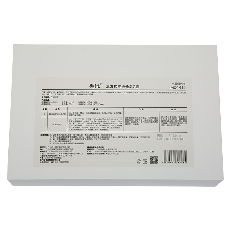 使用方法:晚上洁肤爽肤后,每次取约0.1g维他命C粉与一吸管晶准焕亮乳调合后全脸使用,轻按至吸收。可局部加强使用。日间外出请加强防晒保护。