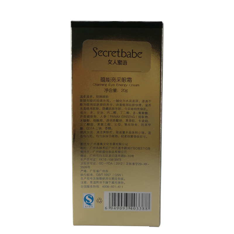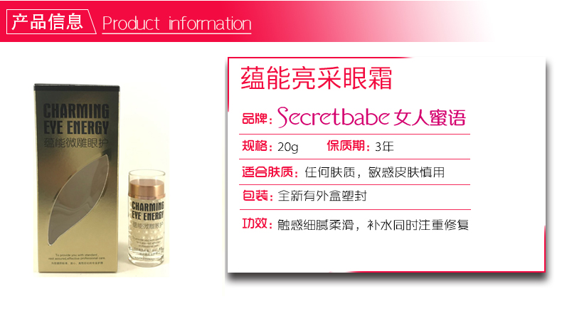作用:为眼周肌肤提供水分及养分,改善修护眼周肌肤,滋养盈润,隐藏岁月痕迹,令眼周肌肤保持水莹亮泽。