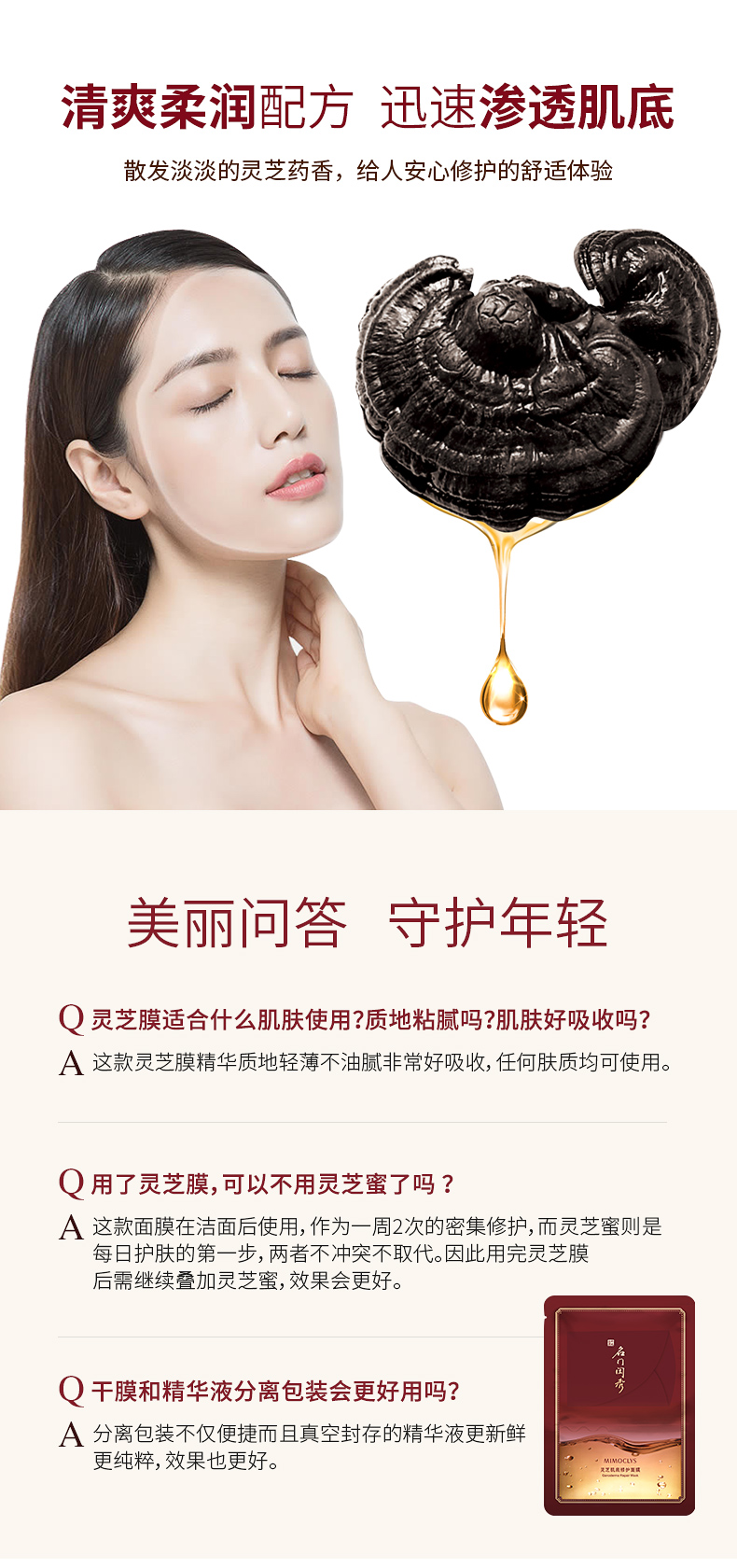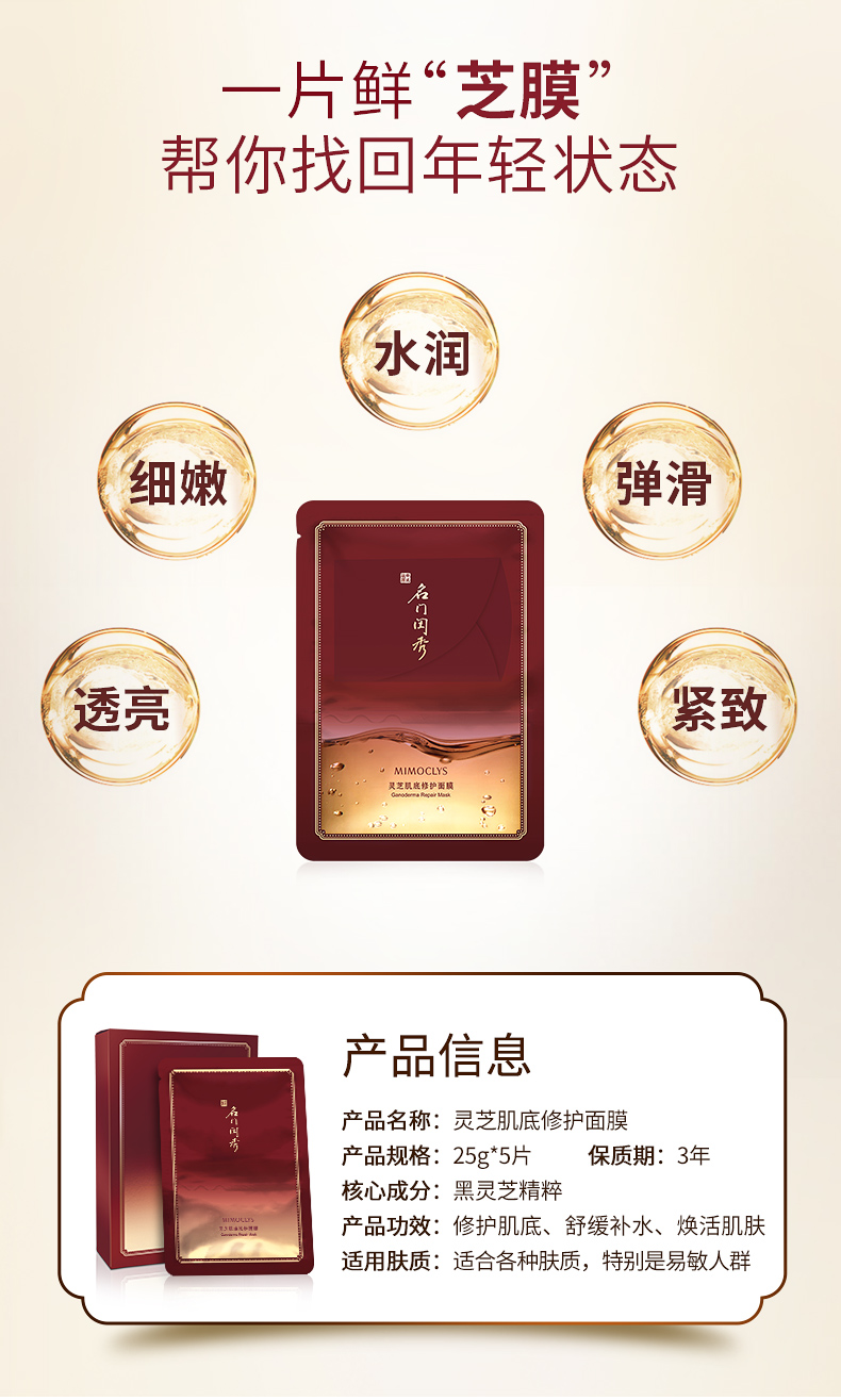 名门闺秀(MIMOCLYS)灵芝肌底修护面膜25g*5片