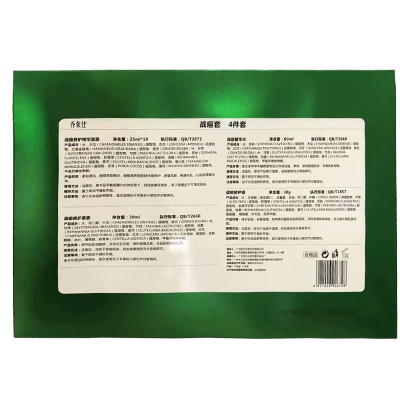 商品规格:战痘修护精华面膜25ml*10片+战痘精华水30ml+战痘修护原液30ml+战痘修护霜30g