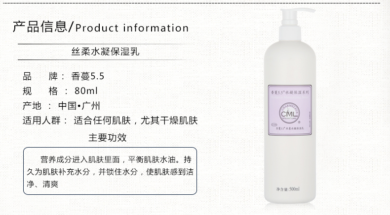 香蔓5.5(CHARMELEUR)丝柔水凝保湿乳500ml