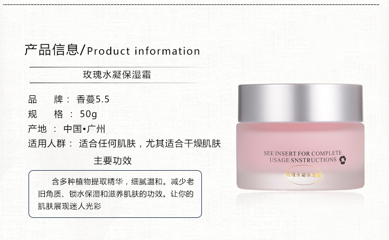 香蔓5.5(CHARMELEUR)玫瑰水凝保湿霜50g