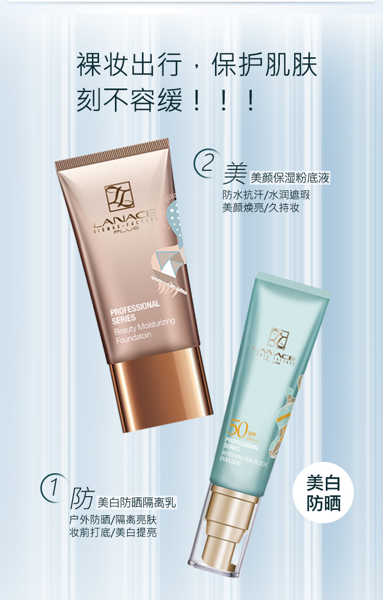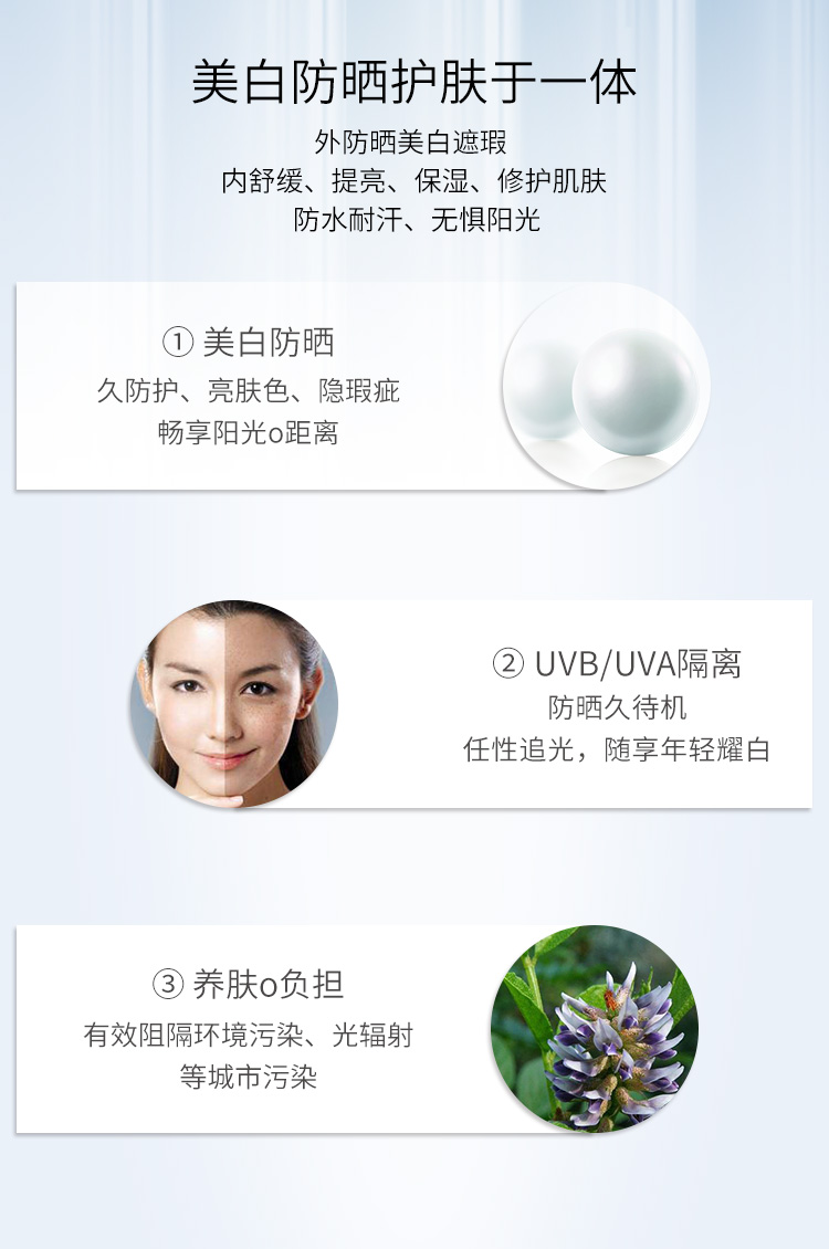 商品规格:美白防晒隔离乳SPF 50 PA+++ 美颜保湿粉底液30g