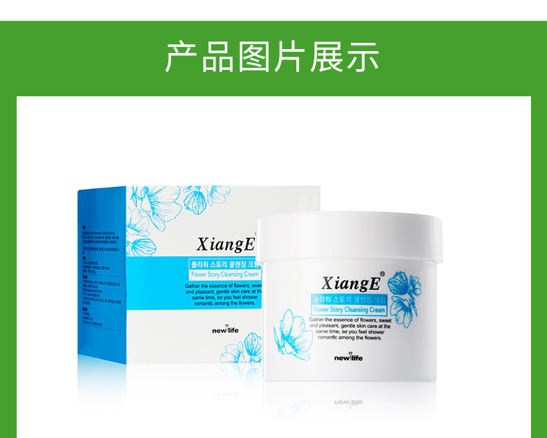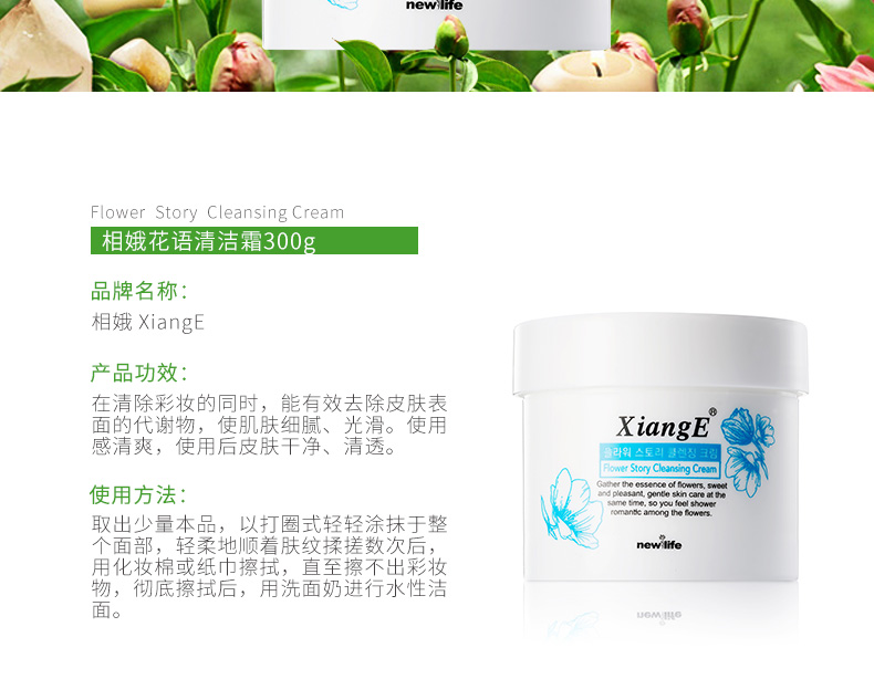 作用:清爽轻薄的使用感,轻揉去除脸部的彩妆、皮肤表面的代谢物和尘垢;蕴含的玫瑰花提取物、莲花提取物等多种花萃精华,令肌肤柔润净透。