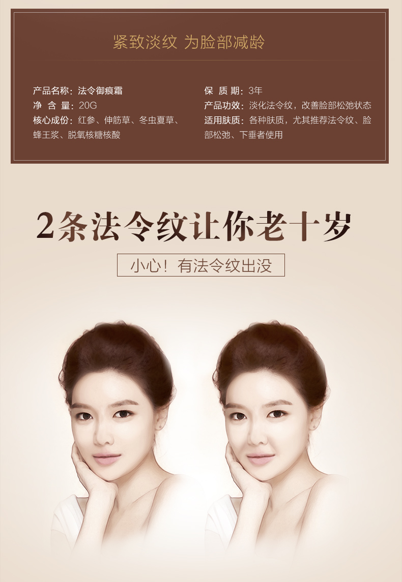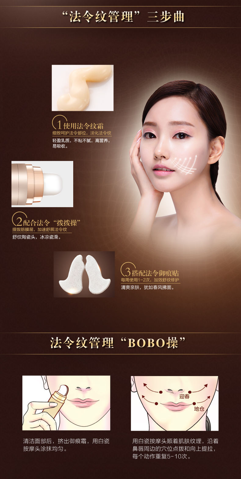 适合肤质:任何肤质,尤其是法令纹、脸部松弛、下垂者使用