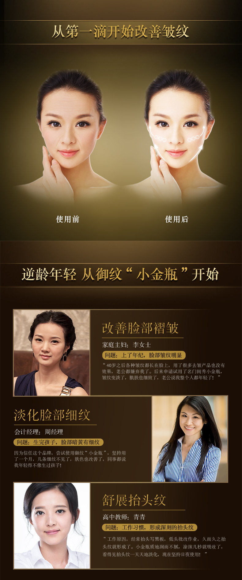 作用:淡化细纹,改善松弛,修护受损、老化肌肤。