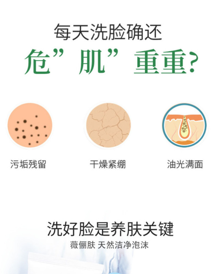 使用方法:取适量于掌心,揉出丰富的泡沫之后,在脸部轻轻按摩打圈,最后用温水洗净。