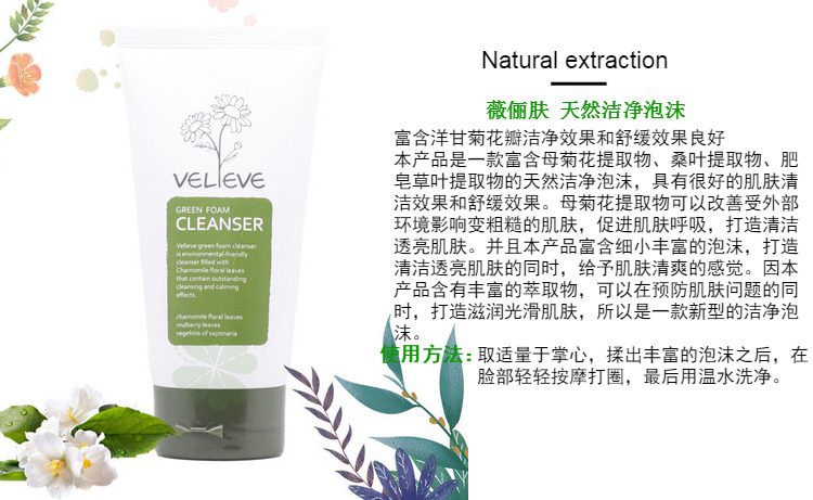 作用:富含洋甘菊花瓣洁净效果和舒缓效果良好。本产品是一款富含母菊花提取物、桑叶提取物、肥皂草叶提取物的天然洁净泡沫,具有很好的肌肤清洁效果和舒缓效果。母菊花提取物可以改善受外部环境影响变粗糙的肌肤,促进肌肤呼吸,打造清洁透亮肌肤。并且本产品富含细小丰富的泡沫,打造清洁透亮肌肤的同时,给予肌肤清爽的感觉。因本产品含有丰富的萃取物,可以在预防肌肤问题的同时,打造滋润光滑肌肤,所以是一款新型的洁净泡沫。