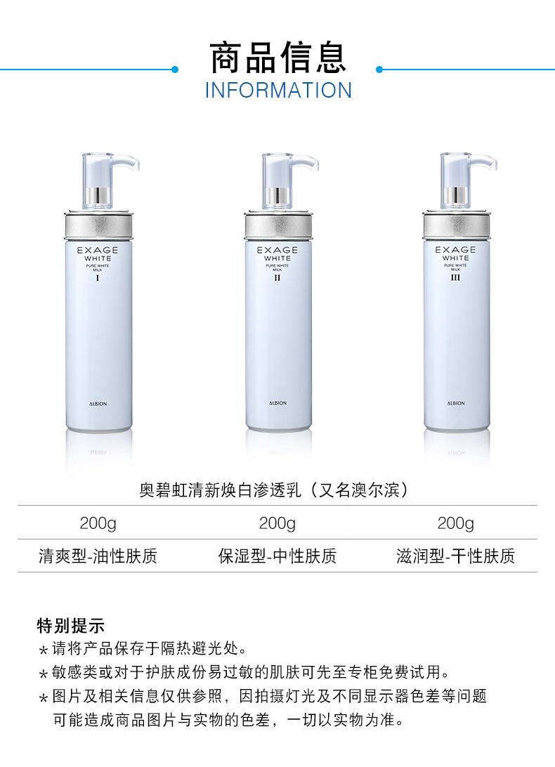 奥尔滨(Albion)奥碧虹清新焕白渗透乳200g(保湿型)