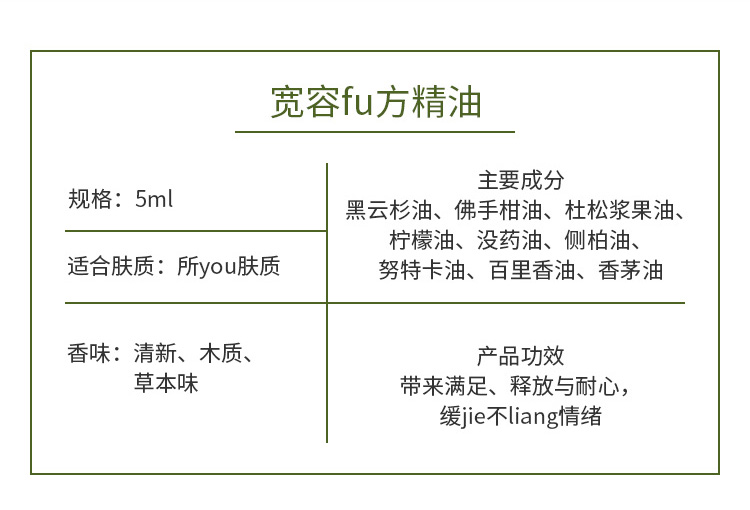 使用方法:可用于芳香调理;可用于局部涂抹;可先稀释后用于敏感肌肤上