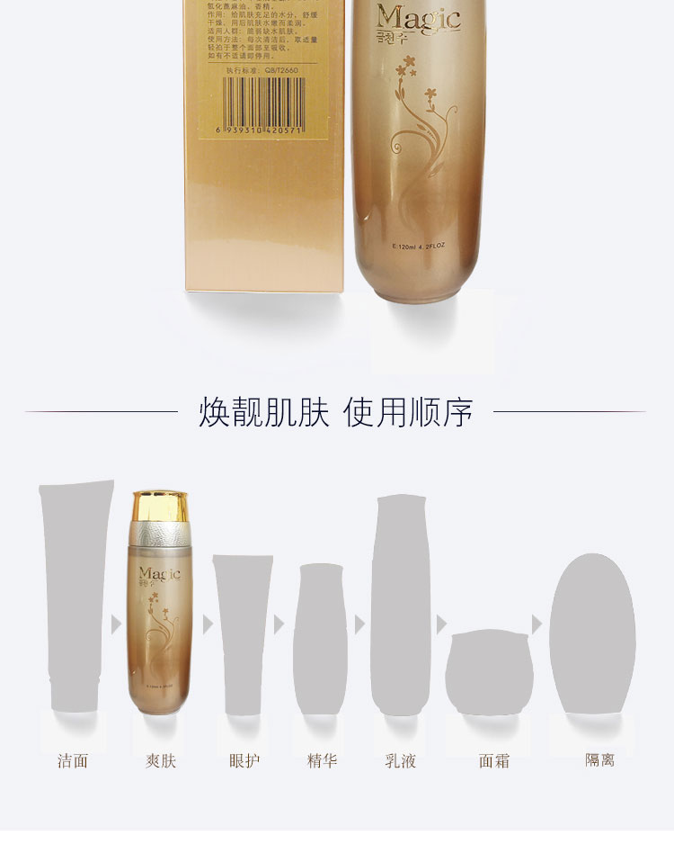 使用方法:清洁后,取适量轻拍于整个面部至吸收。