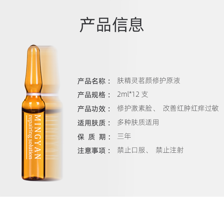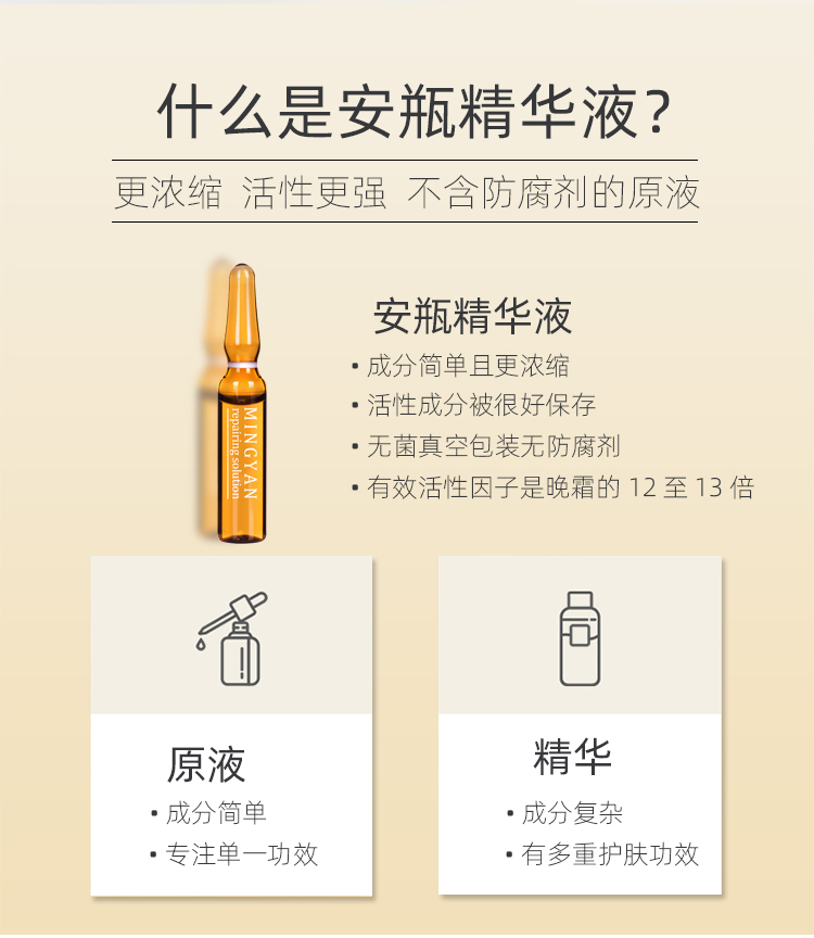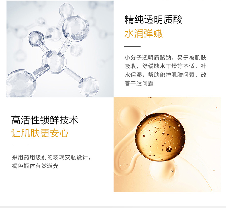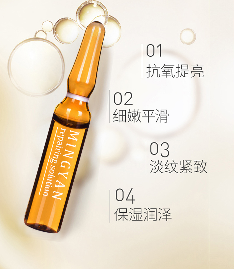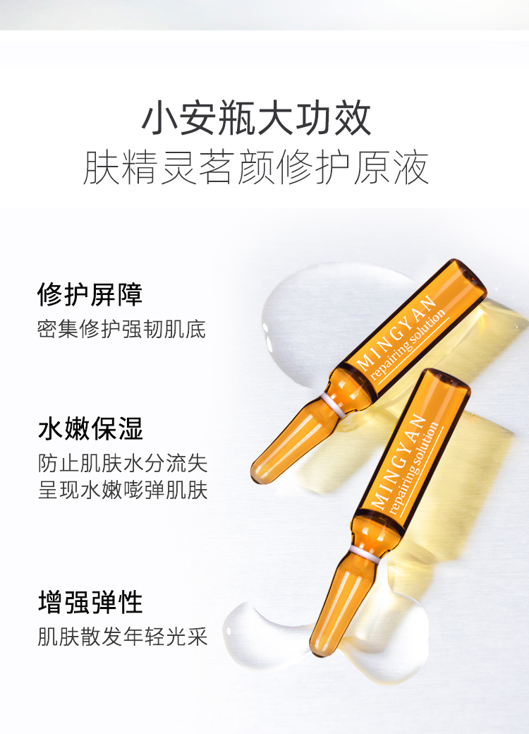 使用方法:洁面后,取一瓶原液;轻弹颈部上下摇匀原液,轻轻折断;将原液滴在手心,涂抹于面部,颈部肌肤,轻轻按摩至吸收即可。