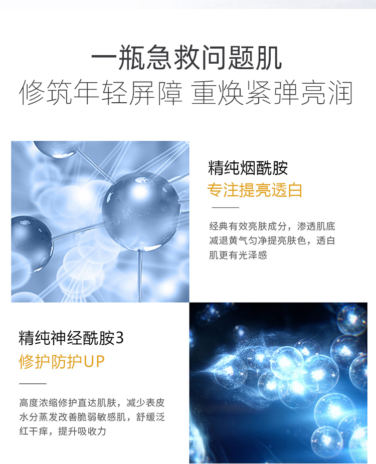 作用:提取丰富龙胆、小球藻等草本植物精华,融合多种舒缓修护成分,改善粗糙、油光等肌肤状态,同时净澈毛孔,平衡滋养,使肌肤细腻清爽。