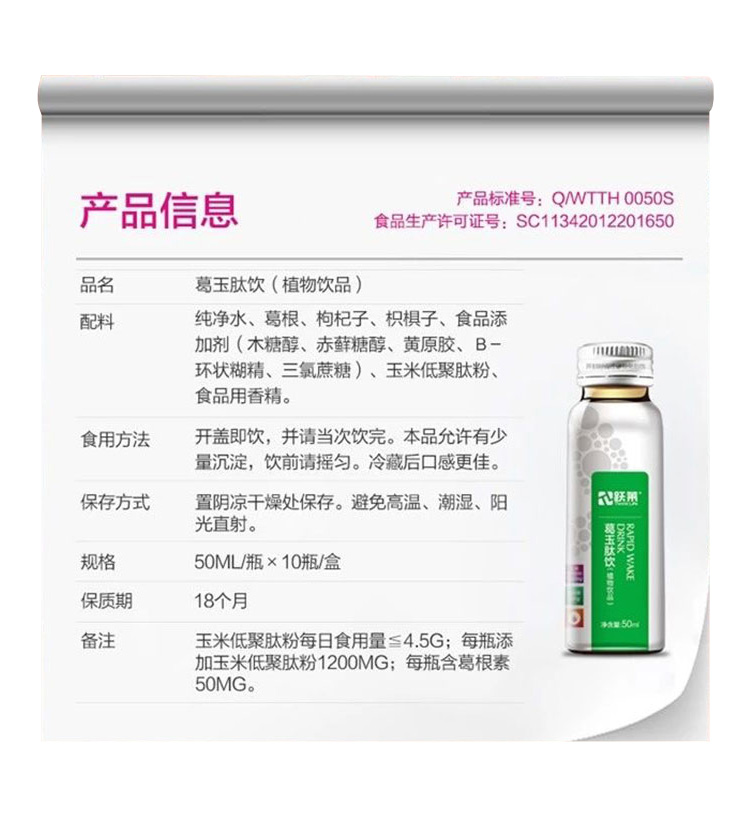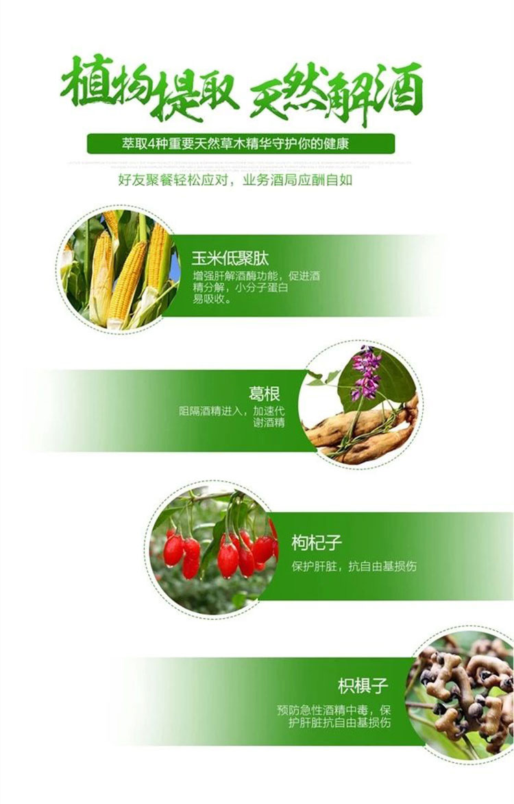 营养成分:葛根、枸杞子、枳椇子、玉米低聚肽粉。