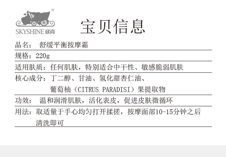 使用方法:取适量于手心均匀打开揉搓,按摩面部10-15分钟之后清洗即可。