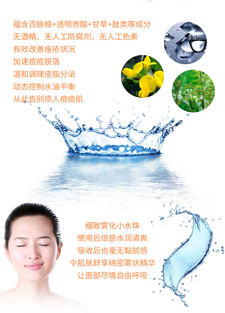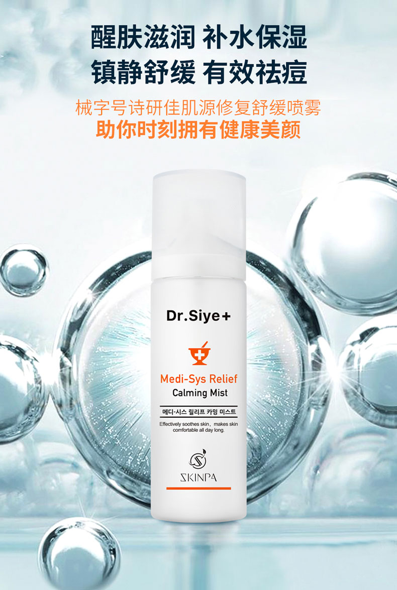 作用:醒肤滋润、补水保湿、镇静舒缓、有效祛痘,诗研佳肌源修复舒缓喷雾,令肌肤尽享舒润清爽。