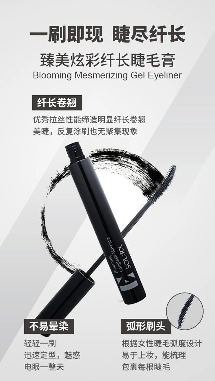 作用:防晕染设计,柔软的贴合感,从根部展现迷人的卷翘效果,丰盈饱满,打造纤长睫毛,令明眸焕发动人光彩,呈现奢华格调。