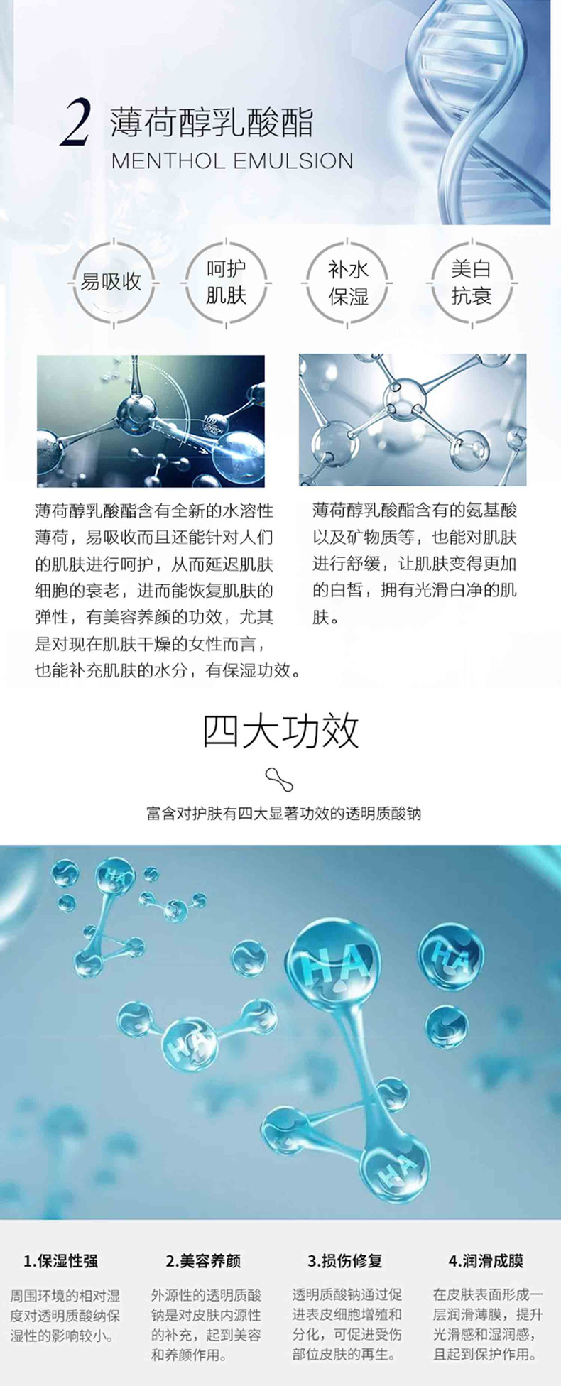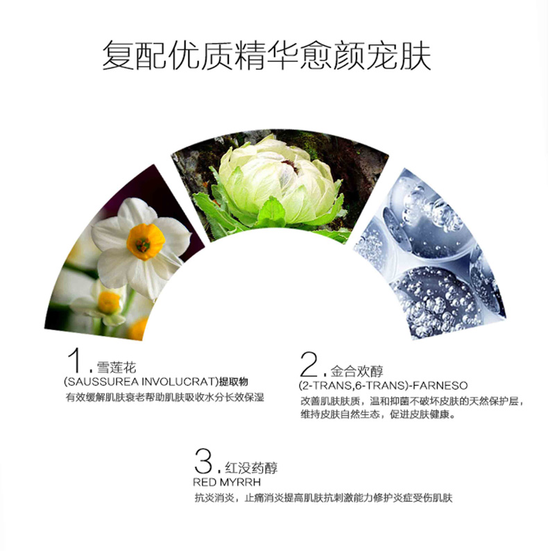 作用:蕴含植物精华水份,补水保湿,补充肌肤水分同时补充肌肤所需营养,改善肌肤干燥。