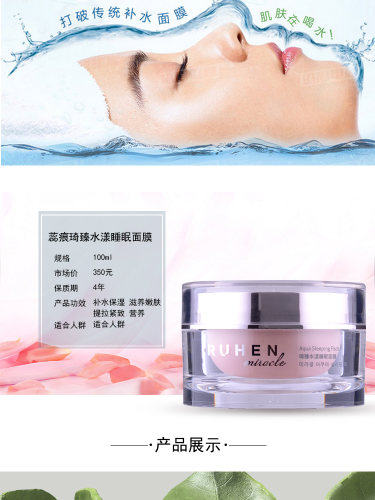 使用方法:洁面后用化妆水擦拭肌肤,取适量均匀涂抹于脸部(避开眼角及唇部周围),轻拍使其吸收,直接进入睡眠即可。