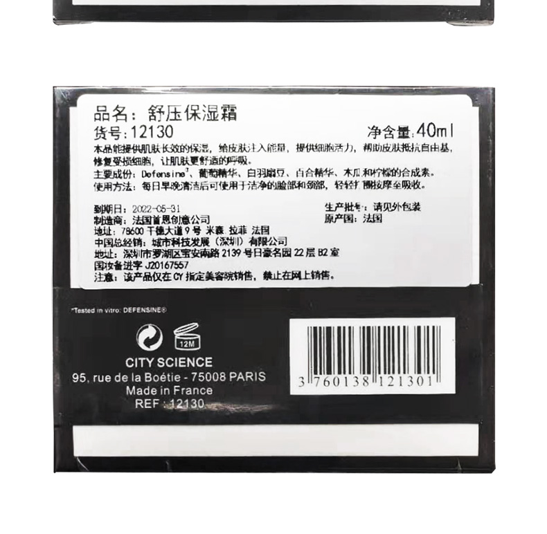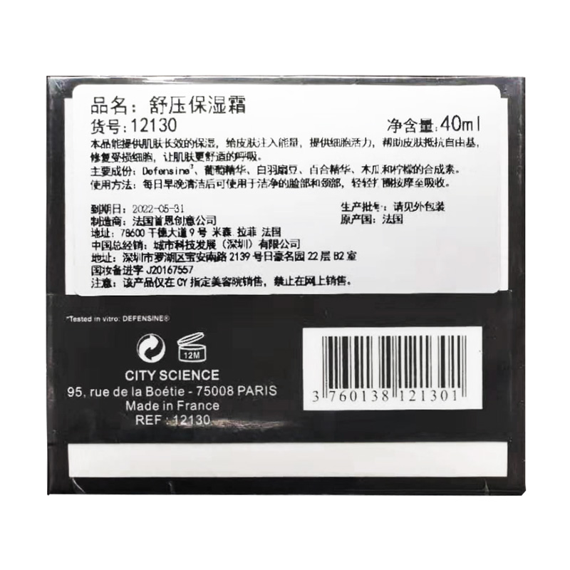 成份:Denfensine、葡萄精华、白羽扇豆、百合精华、木瓜和柠檬的合成素。