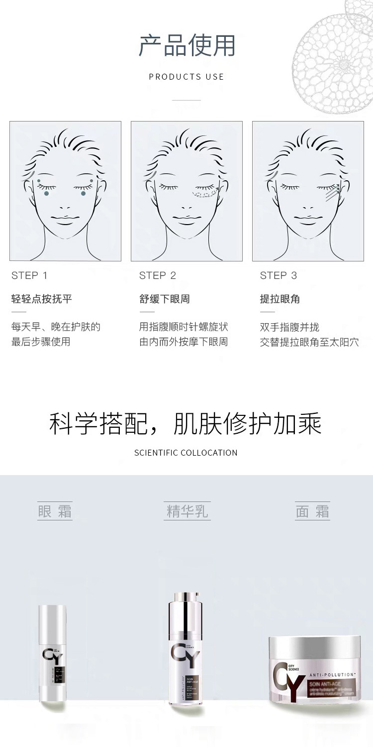 使用方法:每日早晚清洁后在眼周使用,轻轻打圈按摩至吸收。