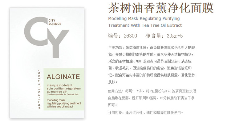 成份:茶树精油、薄荷、海泥、柳叶萃取液、硅藻土、褐藻胶。
