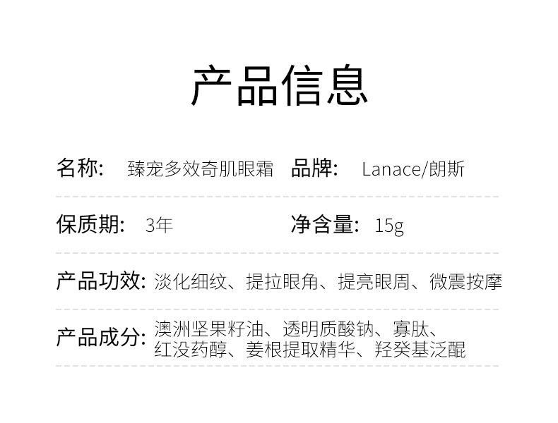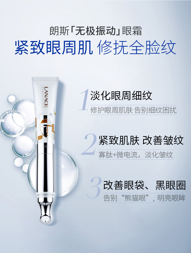 作用:提升眼周肌肤紧实度,淡化细纹,舒润滋养,改善眼部细纹,干纹,焕发年轻睛采。