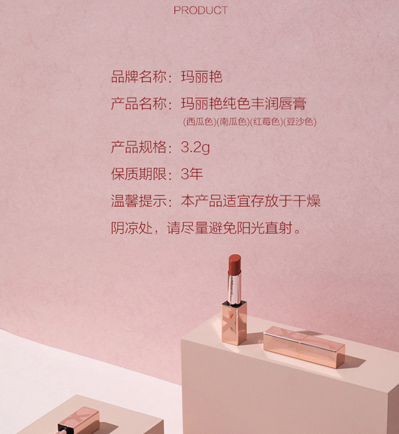 完美玛丽艳(Marie_Anne)玛丽艳纯色丰润唇膏3.2g