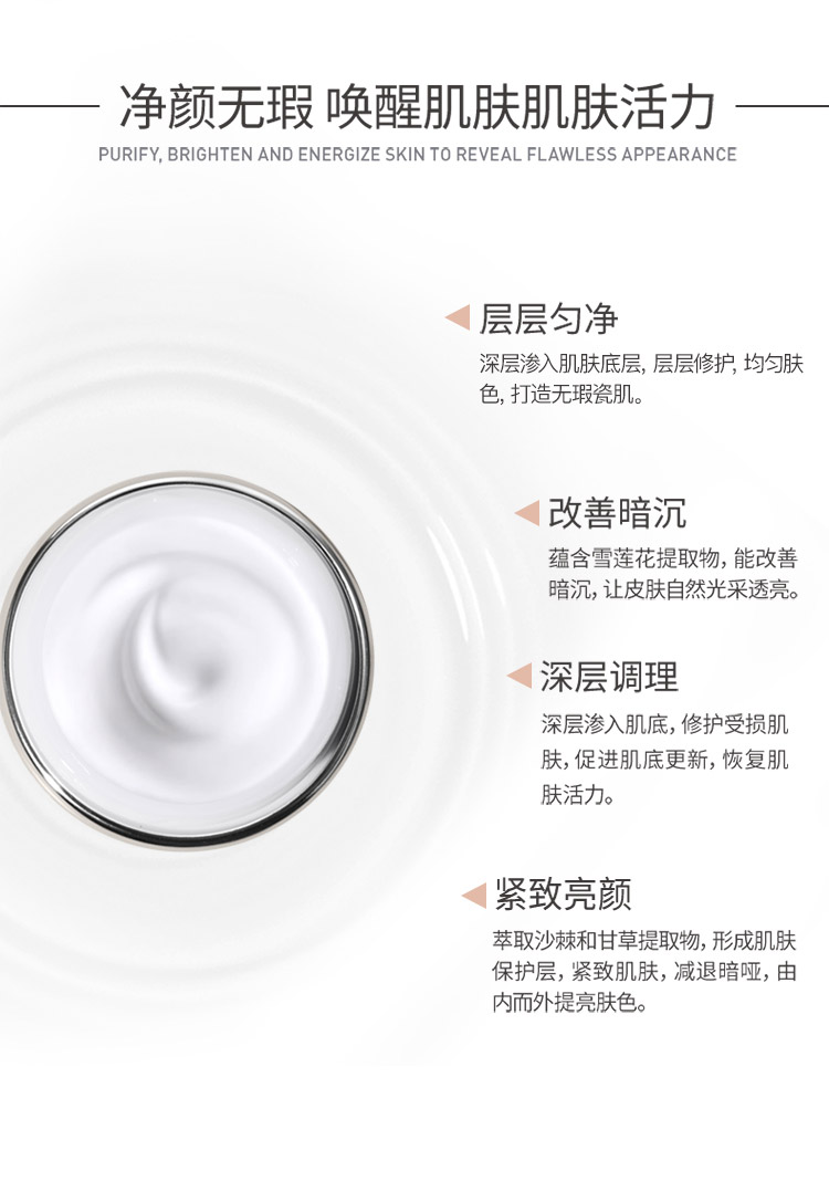 作用:密集修护肤色不均,暗沉,泛黄等肌肤现象,精准渗透肌肤底层,净化浑浊,均亮肤色光泽,由内点亮肌肤光彩靓丽。
