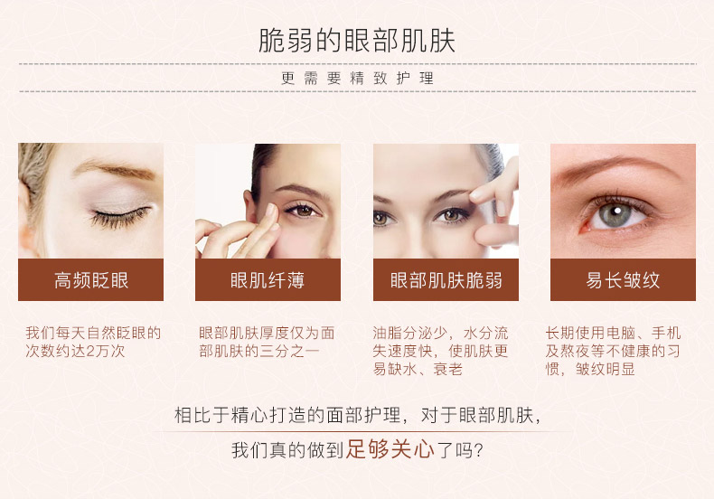 适合肤质:适用于各类肤质,特别推荐有黑眼圈、眼袋人群使用。