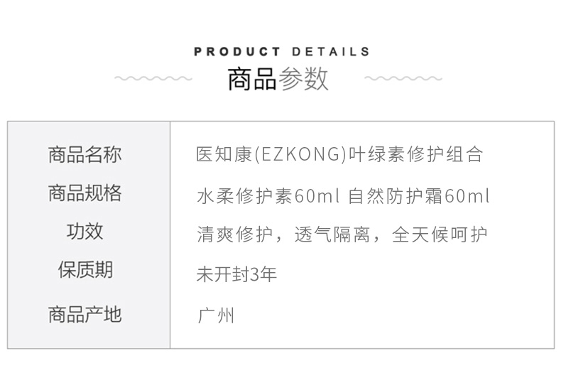 商品规格:水柔修护素60ml 自然防护霜60ml