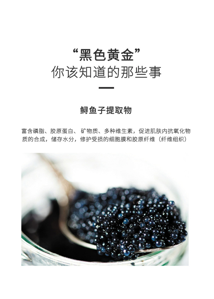 成份:水,丁二醇,卡波姆,透明质酸钠,麦芽寡糖葡糖苷,氢化淀粉水解物,鲟鱼子酱提取物,葡萄糖,寡肽-1,十肽-4,小核菌胶,苯氧乙醇,酵母菌溶胞物提取物,水解植物蛋白,胆甾醇澳洲坚果油酸酯,三乙醇胺,辛酰羟肟酸,1,2-己二醇,香精