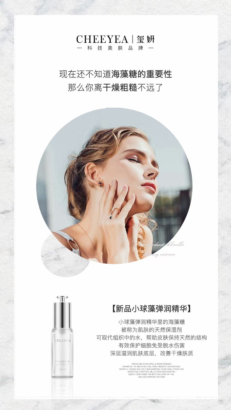 成份:水,丁二醇,丙二醇,小球藻提取物,海藻糖,桃树脂提取物,糖类同分异构体,牡丹根提取物,羧甲基脱乙酰壳多糖,枇杷叶提取物,卷柏提取物,双丙甘醇,甘油,小核菌胶,侧柏叶提取物,卡波姆钠,等。