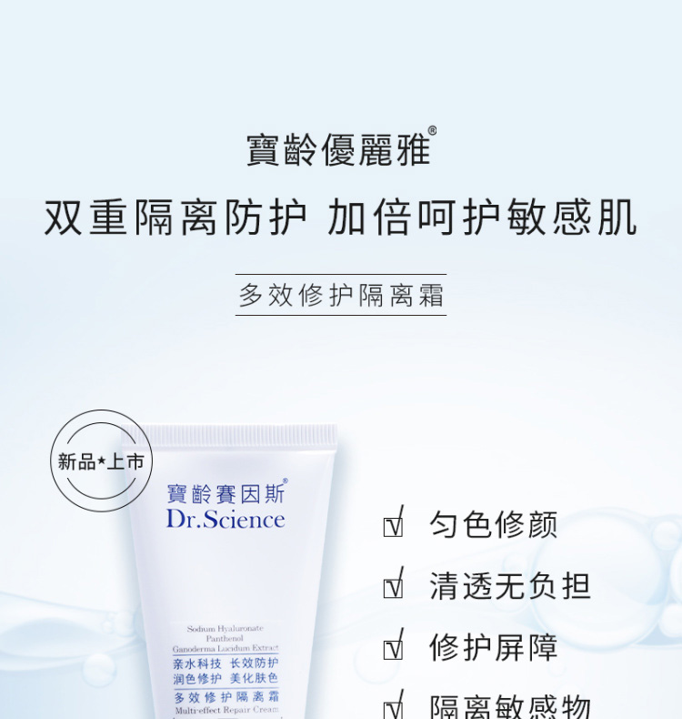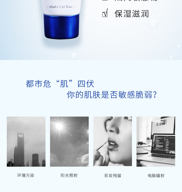 作用:长效防护,阻隔外界环境对皮肤的伤害,清透服帖,质地清爽不油腻,润色修护,让肌肤绽放美丽自然光彩。