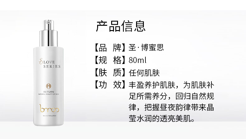 作用:丰盈养护肌肤,为肌肤补足所需养分,回归自然规律,把握昼夜韵律带来晶莹水润的透亮美肌。