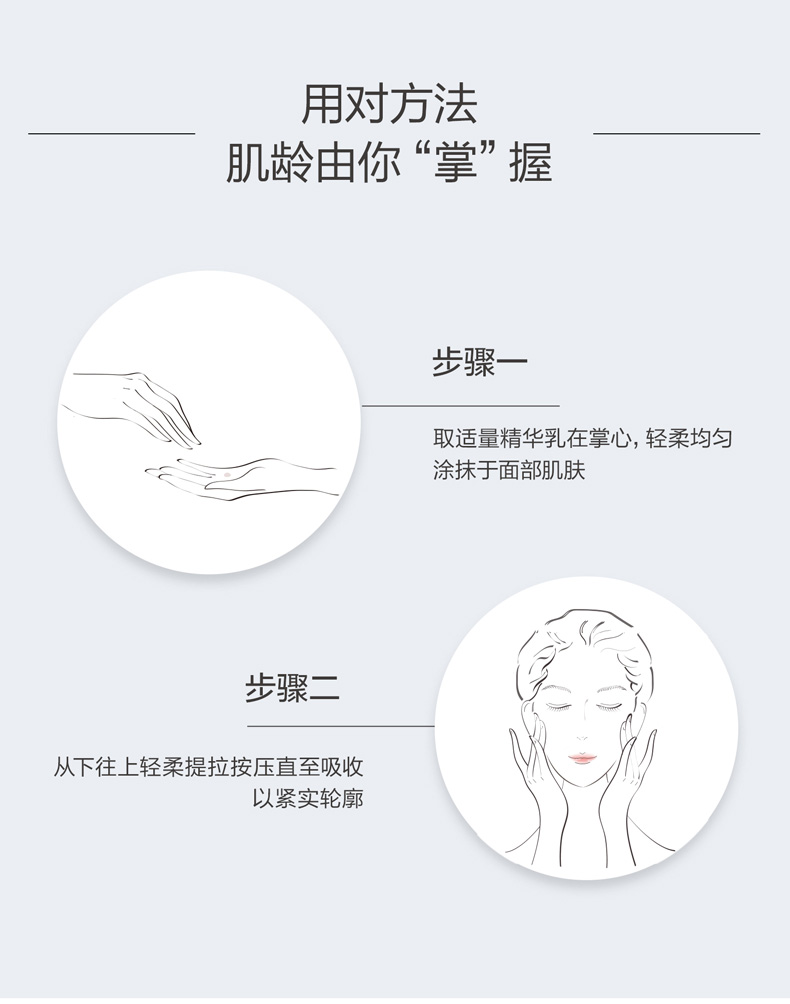 使用方法:洁肤爽肤后,取适量涂抹于面部轻按至吸收。
