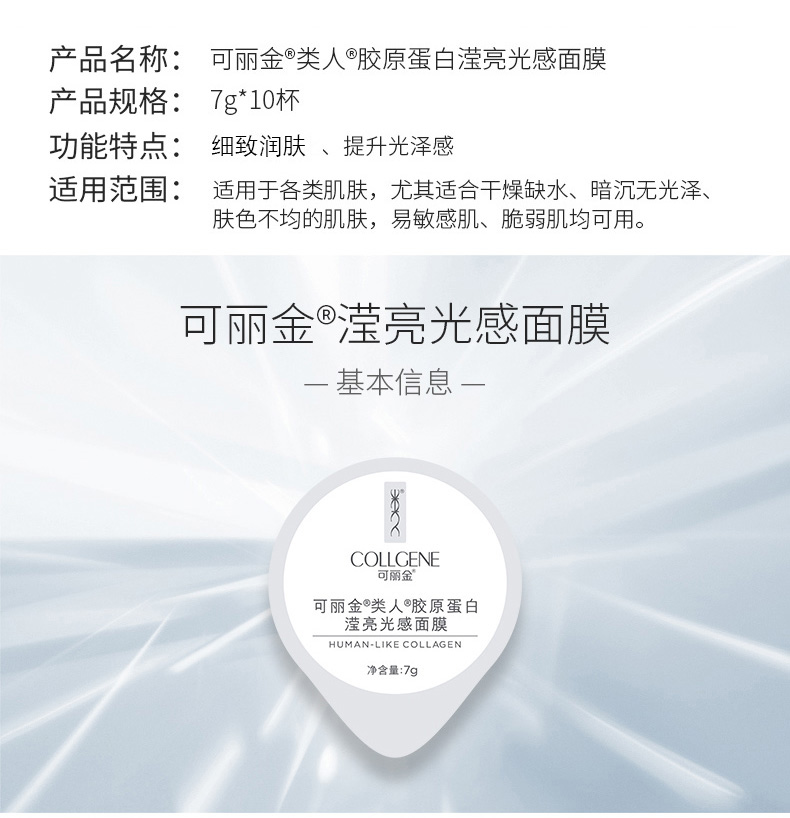 可丽金(COLLGENE)类人胶原蛋白滢亮光感面膜7g*10杯/盒