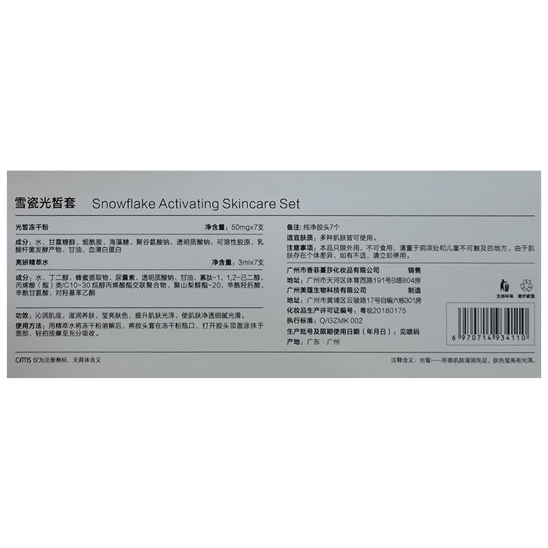 商品规格:光皙冻干粉50mg*7支+亮妍精萃水3ml*7支
