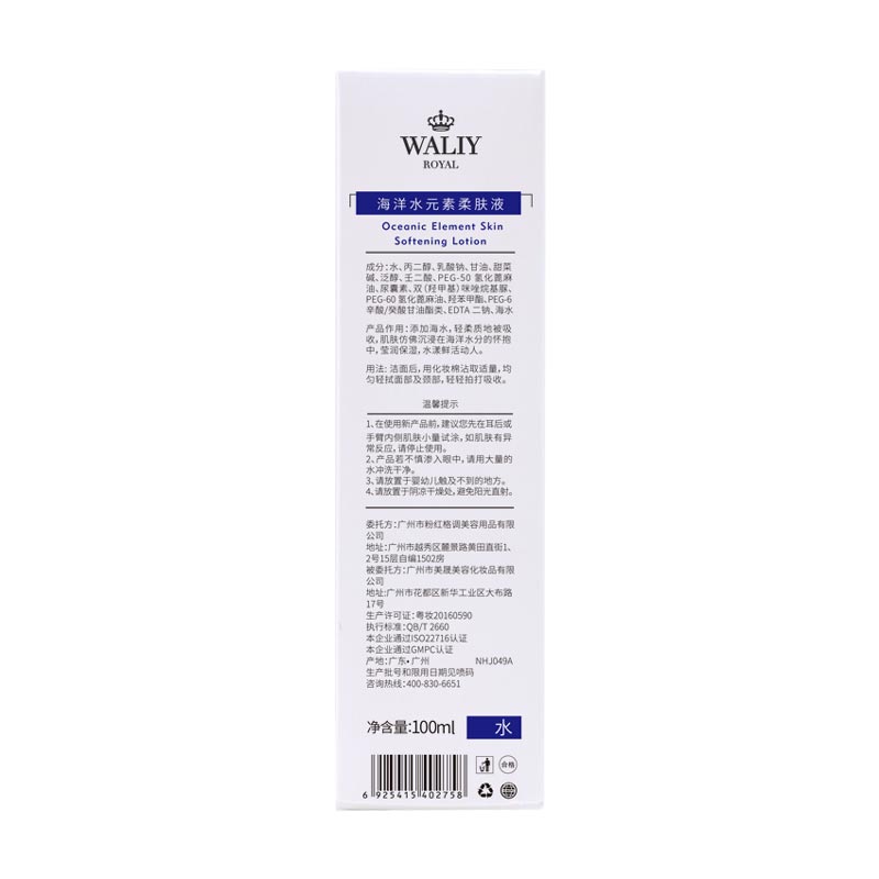 成份:丙二醇,乳酸钠,泛醇,尿囊素,羟苯甲酯,PEG-6 辛酸/癸酸甘油酯类,EDTA 二钠,海水等。